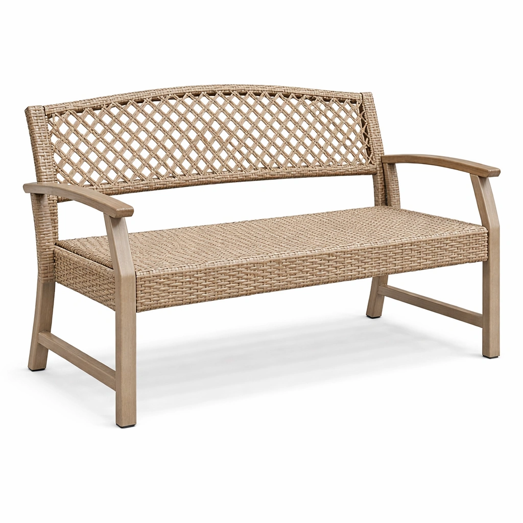 Material: Estructura de madera con asiento y respaldo de ratán sintético